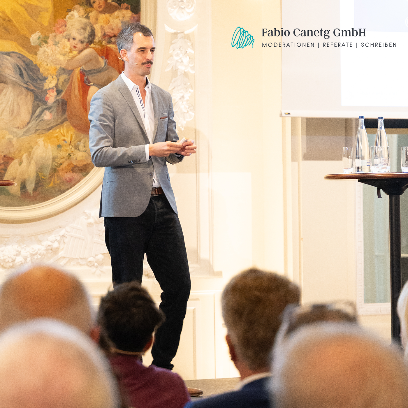 Ich moderiere häufig und mit Leidenschaft unterhalsame Podiumsdiskussionen. Zum Beispiel am Anlass der AWG Luzern 2025 mit SNB-Präsident Martin Schlegel oder an der Finanzmesse 2023 in Zürich mit Petra Tschudin von der Schweizerischen Nationalbank, Yvan Lengwiler von der Universität Basel und Ernst Baltensperger von der Universität Bern.